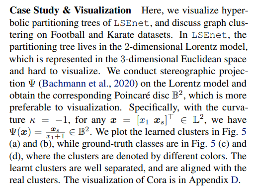 Embedding Expressiveness. In addition to the cluster assignment, LSEnet learns node embeddings in hyperbolic space. We evaluate the embedding expressiveness regarding link prediction. We compare with the popular GCN (Kipf & Welling, 2017), SAGE (Hamilton et al., 2017) and GAT (Velickovic et al., 2018) in Euclidean space, hyperbolic models including HGCN (Chami et al., 2019) and LGCN
