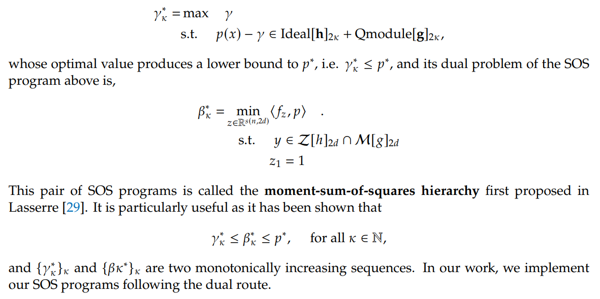 With these notions setup, we can reformulate the POP above into the following SOS program for arbitrary π β N as the relaxataion order,