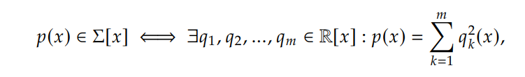 To start with, we define sum-of-squares (SOS) polynomials as polynomials that could be expressed as a sum of squares of some other polynomials, and we define Ξ£[π₯] to be the collection of SOS polynomials. More formally, we have