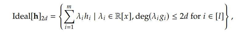 Similarly, given a set of polynomials h = [β1, β2, ..., βπ], the ideal generated by h is defined as,