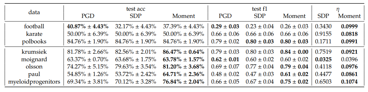 Perhaps the most critical drawback of SDP and sparse moment-sum-of-squares relaxations is their limited scalability. The runtime and memory consumption grows quickly with data size and we need to divide into sub-tasks, such as using one-vs-one training scheme, to alleviate the issue. For relatively large datasets, we may need to develop more heuristic approaches for solving our relaxed optimization problems to achieve runtimes comparable with projected gradient descent. Combining the GD dynamic with interior point iterates in a problem-dependent manner could be useful [41].
