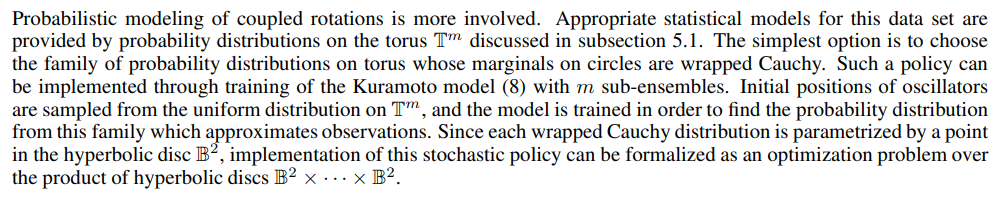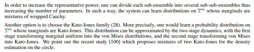 Suppose that we have a set of observations of the linked robot’s arm with m − 1 joints. Mathematically, this is formalized as a problem of learning m coupled actions of the group SO(2). Recent study [48] experimented with three types of normalizing flows on the torus with applications to this problem.